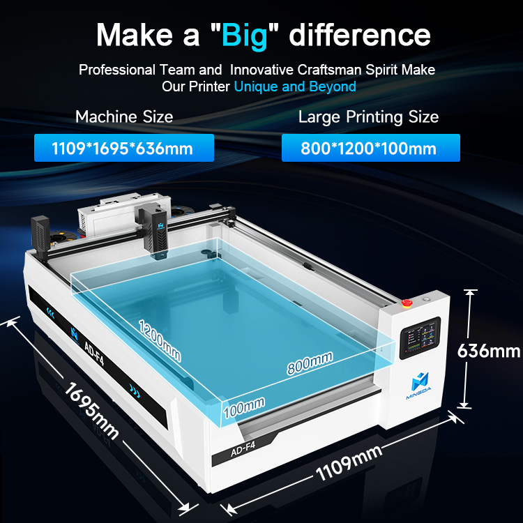 MINGDA AD-F4 este o imprimantă 3D industrială, rapidă și stabilă, proiectată pentru producția de semnalistică multicoloră, la format mare. Volumul generos de imprimare, extrudarea în patru culori și funcțiile inteligente de automatizare asigură eficiență ridicată și calitate constantă pentru profesioniști.